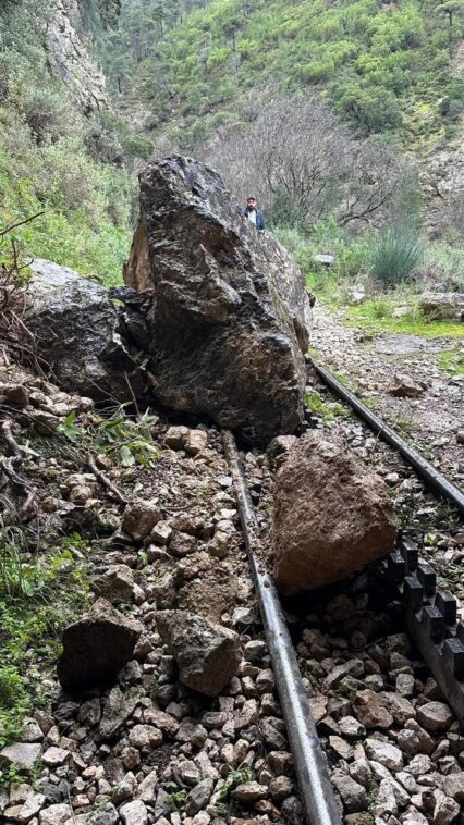 Σε μια διαδρομή όπου το τρένο κινείται ανάμεσα σε απόκρημνες βραχώδεις πλαγιές και στενά περάσματα του φαραγγιού, είναι προφανές ότι μια αιφνίδια πτώση βράχου πάνω στη γραμμή, μπορεί να δημιουργήσει άμεσο κίνδυνο για την ασφαλή διέλευση των συρμών και την ασφάλεια επιβατών και εργαζομένων.